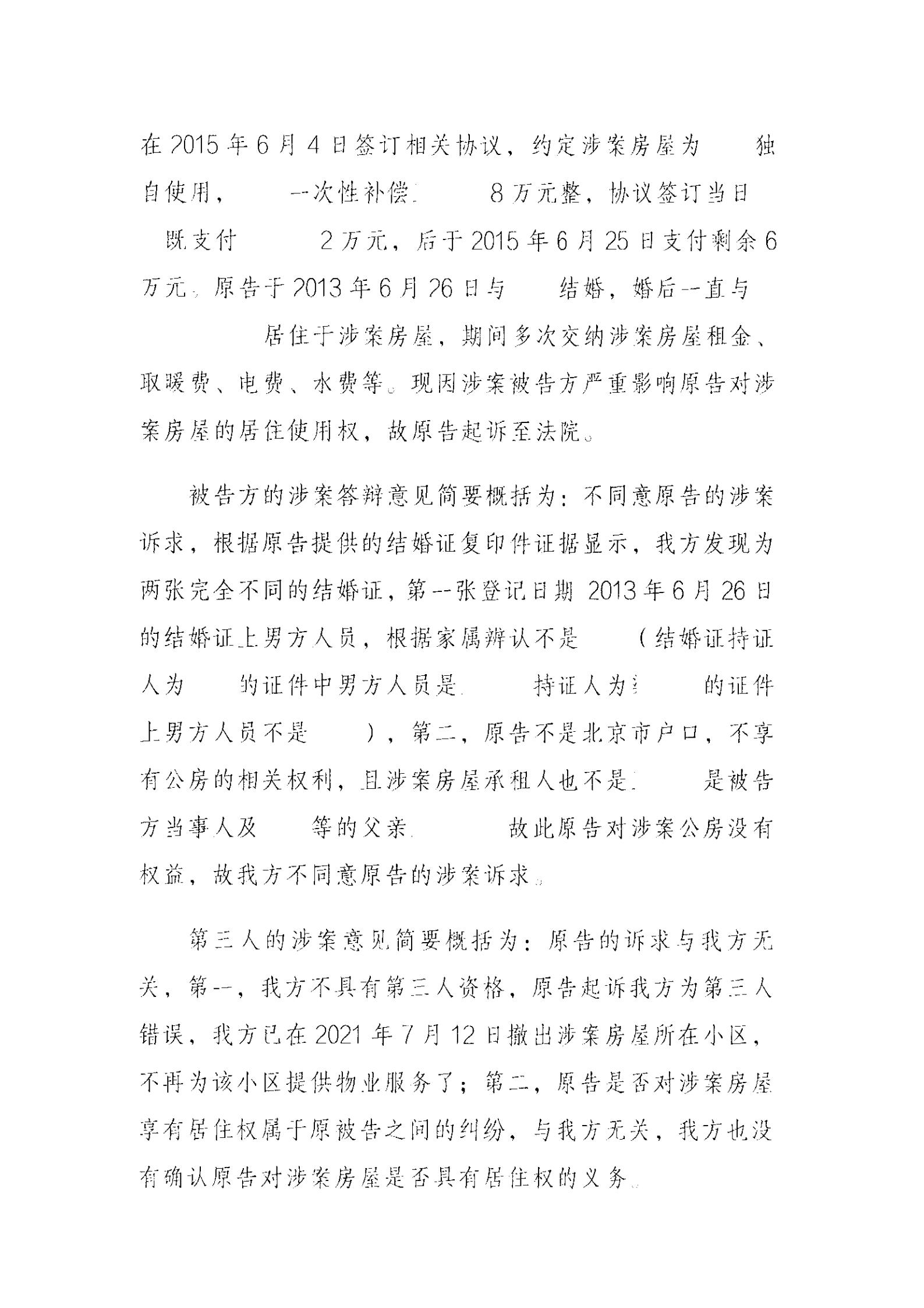 法庭上,双方展开激烈辩论。团队律师代表李女士据理力争,提出三点关键论证:其一,李女士作为丈夫的合法配偶和拆迁安置的家庭成员,有权继续居住在该房屋内;其二,其丈夫当年以安置人口身份获得的居住权,应自然延伸至李女士;其三,其丈夫在拆迁时支付给姐姐的补偿款,是以换取居住权为目的,这进一步证明了李女士在该房屋中的居住权益。