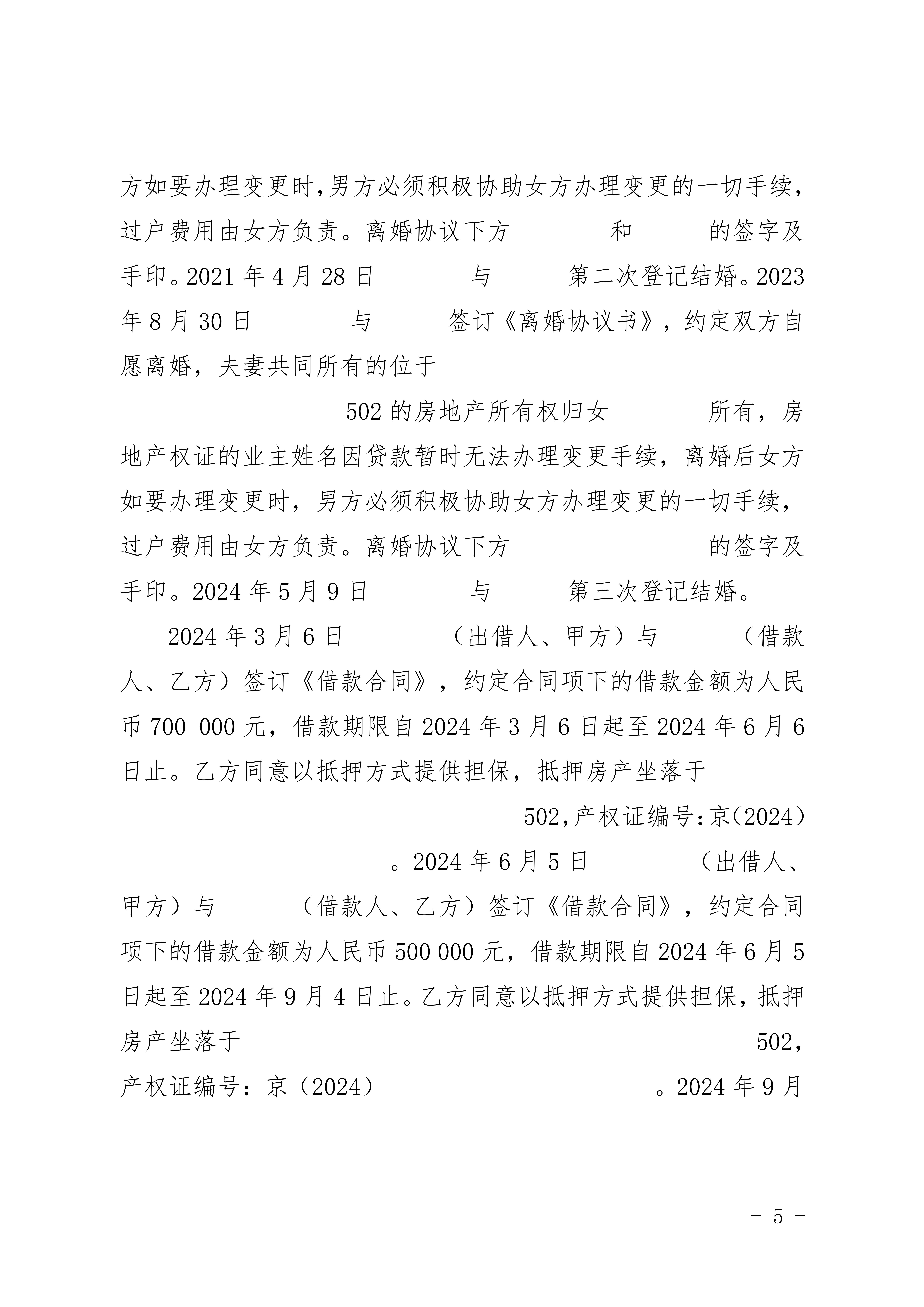 2008 年,白女士与周先生结婚后共同在北京购置一套房产,登记在周先生名下。2019 年二人离婚,备案离婚协议明确房产归白女士所有,因房贷未结清暂未过户,男方需配合后续过户;2021 年二人为孩子复婚,2023 年因投资理念分歧再次离婚,第二次离婚协议仍约定房产归白女士,2024 年二人再次复婚。